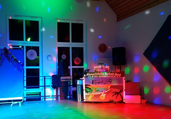 Die Musik-Lautstärke und Lichtanlage wird je nach Größe der Räumlichkeit angepasst: (Lokal, Saal, Zelt oder Open-Air).